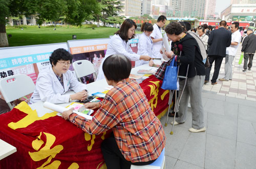 活動現(xiàn)場,我市二院呼吸科韓紅梅主任、楊洋醫(yī)生為百姓免費測量血壓、咨詢有關戒煙知識,為百姓現(xiàn)場咨詢答疑,同時對向廣大市民進行煙草危害和控煙方面知識以及健康生活方式方面知識的測驗,使廣大市民認識到煙草帶來的嚴重危害。感染管理科秦菊芳科長帶領其他醫(yī)務人員擺放宣傳展板宣傳煙草的危害、懸掛條幅進行宣傳無煙日的主題及口號、發(fā)放宣傳折頁及宣傳手冊。